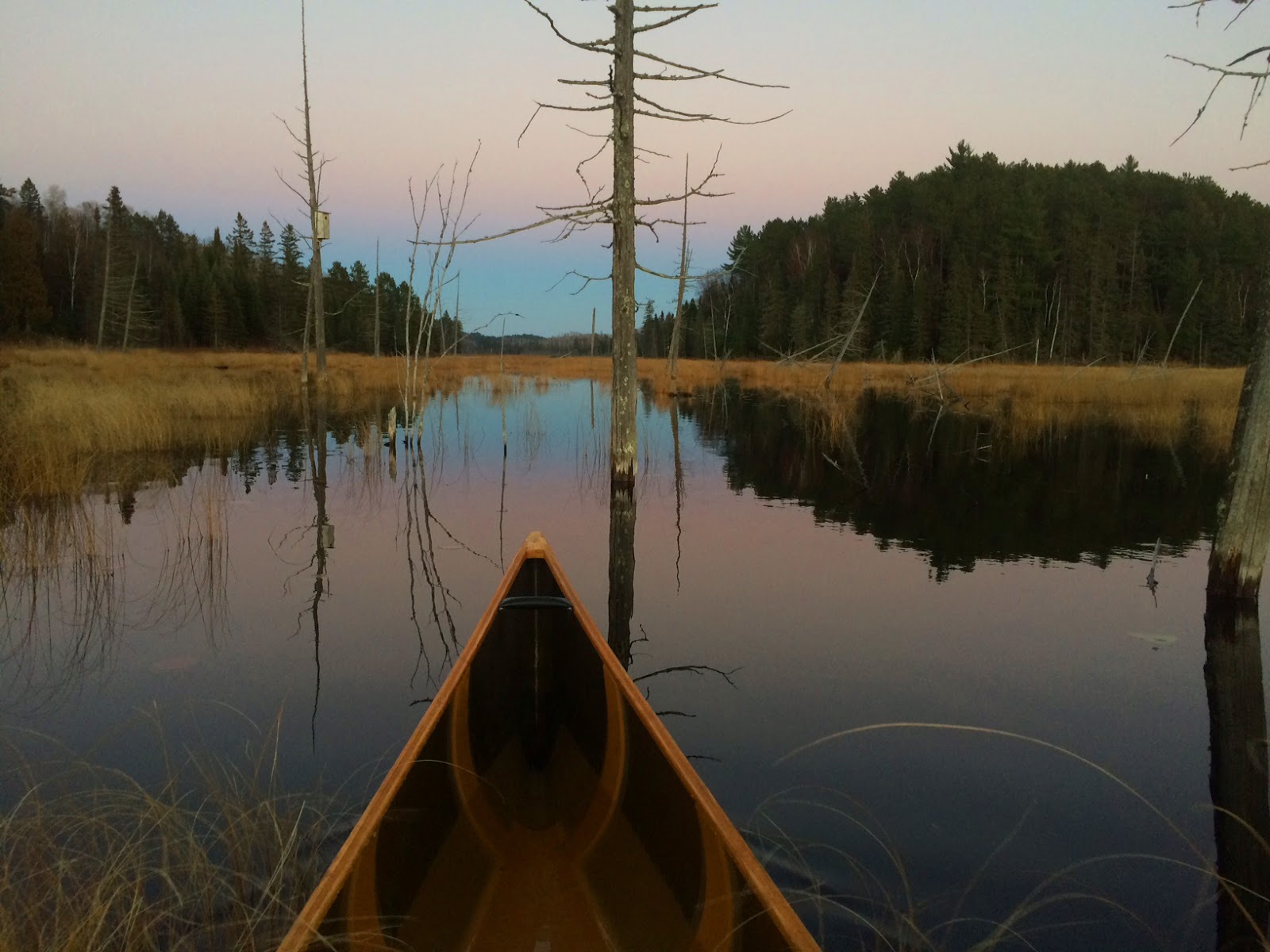 That portage ends at Mudro Lake where I hear my first voices since the radio in my vehicle. It's a family coming in late in the day and staying at the one Mudro site. I didn't want to see anyone, but what are you going to do.